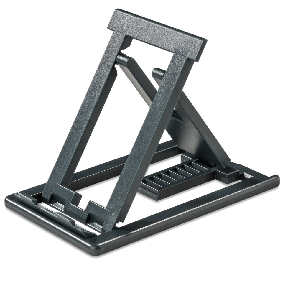 uniQ-stand, der universelle Ständer im Kreditkartenformat, für alle Multimediageräte.